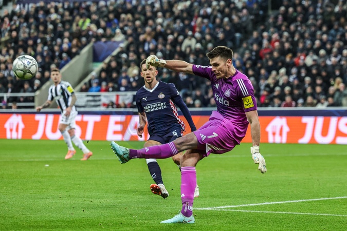 Newcastle Untied goalkeeper Nick Pope clears the ball during the UEFA Champions League Matchday 7 of 8 Newcastle United v PSV Eindhovenn at St. James's Park, Newcastle, United Kingdom, 21st January 2026, Credit:Mark Cosgrove/News Images / Avalon