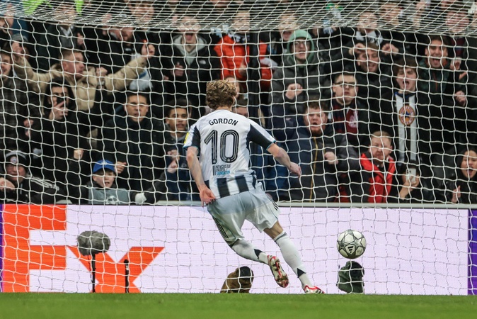 Anthony Gordon of Newcastle Untied scores to make it 2-0 during the UEFA Champions League Matchday 7 of 8 Newcastle United v PSV Eindhovenn at St. James's Park, Newcastle, United Kingdom, 21st January 2026, Credit:Mark Cosgrove/News Images / Avalon