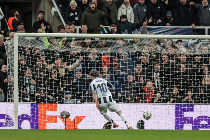 Anthony Gordon of Newcastle Untied scores to make it 2-0 during the UEFA Champions League Matchday 7 of 8 Newcastle United v PSV Eindhovenn at St. James's Park, Newcastle, United Kingdom, 21st January 2026, Credit:Mark Cosgrove/News Images / Avalon