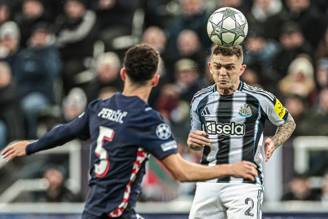 Kieran Trippier of Newcastle Untied heads the ball during the UEFA Champions League Matchday 7 of 8 Newcastle United v PSV Eindhovenn at St. James's Park, Newcastle, United Kingdom, 21st January 2026, Credit:Mark Cosgrove/News Images / Avalon