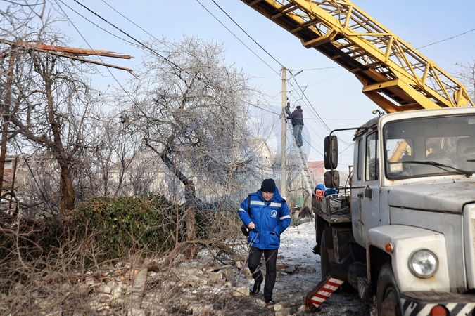 Electricians carry out repair works on a power line damaged in a Russian drone attack in Molodizhne, Odesa region, Ukraine, on January 21, 2026, Credit:Nina Liashonok / Avalon