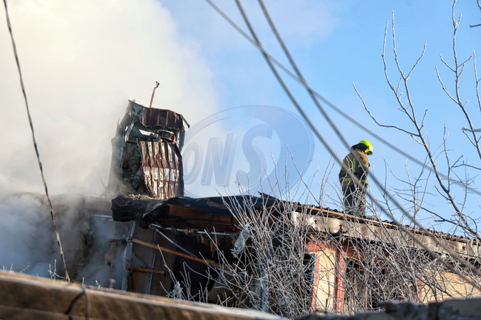 A firefighter extinguishes a fire on the roof of a house that broke out following a Russian drone attack in Oleksandrivka, Odesa region, Ukraine, on January 21, 2026, Credit:Nina Liashonok / Avalon