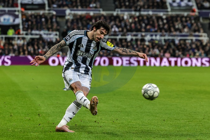 Sandro Tonali of Newcastle Untied crosses the ball into the box during the UEFA Champions League Matchday 7 of 8 Newcastle United v PSV Eindhovenn at St. James's Park, Newcastle, United Kingdom, 21st January 2026, Credit:Mark Cosgrove/News Images / Avalon