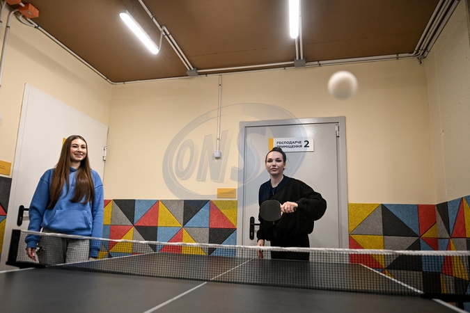 Students play table tennis during a break in a lounge area of a new underground school opened on the premises of Secondary School No. 87 in the Dniprovskyi district of Zaporizhzhia, Ukraine, on January 15, 2026. This is the 18th safe educational space opened in Zaporizhzhia region. Built under a state radiation shelter construction program, the underground school enables in-person learning in safe conditions. Covering more than 1,300 square meters, it can accommodate nearly 1,000 students in two shifts from School No. 87 and neighboring Gymnasium No. 26 and is equipped with modern classrooms, multimedia facilities, a cafeteria, medical unit, sanitary rooms, a lounge area and a sports corner, Credit:Dmytro Smolienko / Avalon