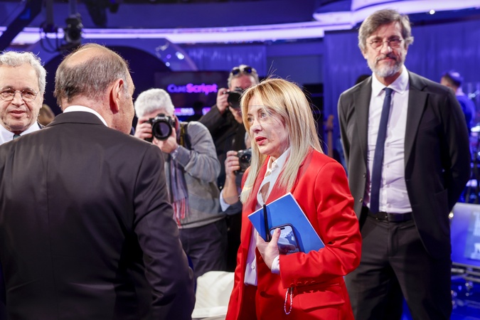 January 21, 2026, Rome, Rai, Porta a Porta broadcast, pictured are Bruno Vespa and Giorgia Meloni, Credit:Cristiano Minichiello / Avalon
