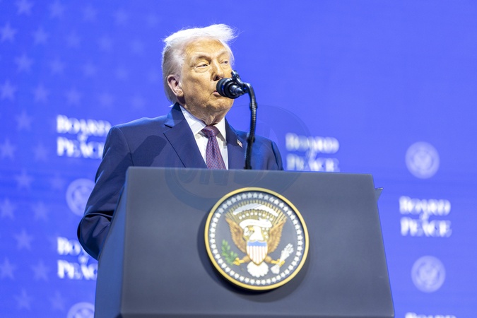 Aljaksandr Ganewitsch, Ambassador to Switzerland, Belarus Government, Belarus; Ayman Al Safadi, Deputy Prime Minister and Minister of Foreign Affairs and Expatriates of the Hashemite Kingdom of Jordan; Donald J. Trump, President of the United States of America; Faisal bin Farhan Al Saud, Minister of Foreign Affairs of Saudi Arabia; Hakan Fidan, Minister of Foreign Affairs of Türkiye; Ilham Aliyev, President of the Republic of Azerbaijan; Isa bin Salman bin Hamad Al Khalifa, Minister of the Prime Minister's Court of the Kingdom of Bahrain; Jared Kushner, Founder and Chief Executive Officer, Affinity Partners, USA; Javier Milei, President of Argentina; Karoline Leavitt, White House Press Secretary, USA; Kassym-Jomart Tokayev, President of Kazakhstan; Khaldoon Khalifa Al Mubarak, Group Chief Executive Officer, Mubadala Investment Company, United Arab Emirates; Marco Rubio, US Secretary of State; Mian Muhammad Shehbaz Sharif, Prime Minister of Pakistan; Mohammed Bin Abdulrahman Al Thani, Prime Minister and Minister of Foreign Affairs of the State of Qatar; Nasser Bourita, Minister of Foreign Affairs, African Cooperation and Moroccan Expatriates of the Kingdom of Morocco; Nickolay Mladenov, High Representative for Gaza, Board of Peace, USA; Nikol Pashinyan, Prime Minister of the Republic of Armenia; Prabowo Subianto, President of Indonesia; Santiago Peña, President of Paraguay; Shavkat Mirziyoyev, President of Uzbekistan; Steve Witkoff, Special Envoy for Peace Missions, US Department of State; Viktor Orban, Prime Minister of Hungary; Vjosa Osmani-Sadriu, President of Kosovo; during Session: Board of Peace at the World Economic Forum Annual Meeting 2026 in Davos-Klosters, Switzerland, 22 January. Copyright: World Economic Forum / Benedikt von Loebell, Credit:Benedikt von Loebell / Avalon