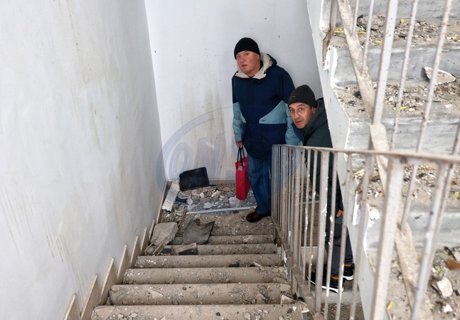 Men inspect the aftermath of a Russian drone attack on one of the floors of a multi-storey residential building in Chornomorsk, Odesa region, Ukraine, on January 22, 2026. The city was left without electricity and heating overnight, Credit:Nina Liashonok / Avalon