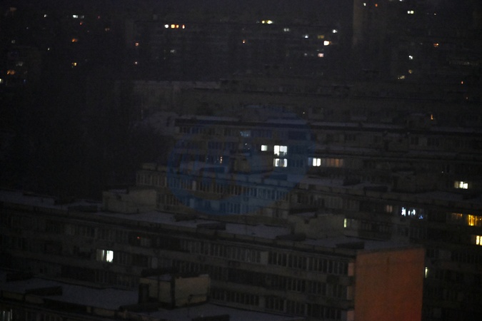 Residential high-rise buildings remain without power in the Rusanivka district of Kyiv, Ukraine, on January 21, 2026. Emergency electricity shutdowns remain in effect across the city, Credit:Yevhen Kotenko / Avalon