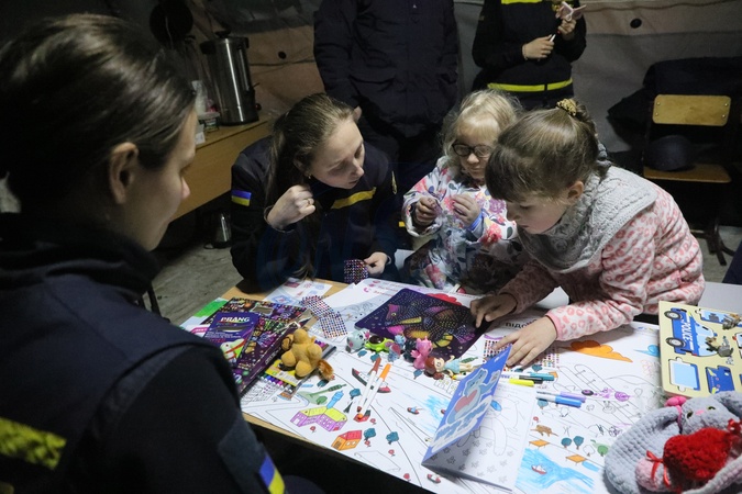 Psychologists entertain children at a mobile heating point operated by the State Emergency Service of Ukraine in the Voskresenka district of Kyiv, Ukraine, on January 21, 2026, Credit:Yuliia Ovsiannikova / Avalon