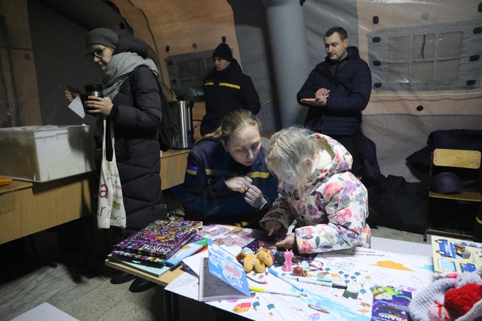 A psychologist speaks to a child at a mobile heating point operated by the State Emergency Service of Ukraine in the Voskresenka district of Kyiv, Ukraine, on January 21, 2026, Credit:Yuliia Ovsiannikova / Avalon