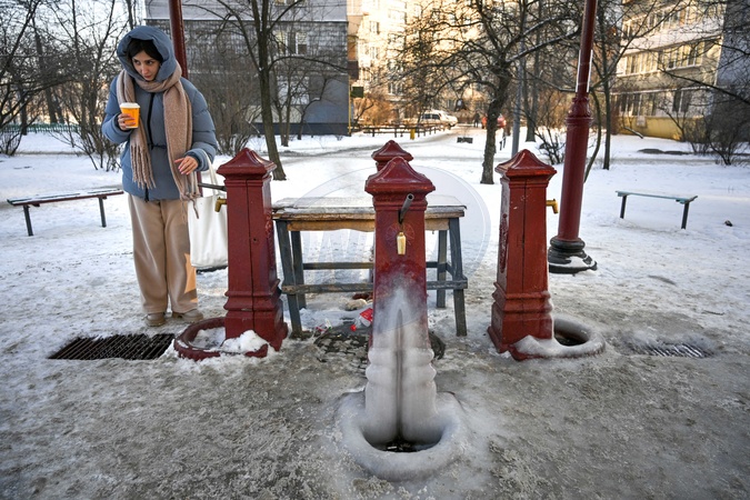 A woman stands by a water pump that stopped operating due to a power outage in Kyiv, Ukraine, on January 21, 2026. Almost the entire left bank of Kyiv was left without water overnight on January 20 following Russian shelling and power outages at Kyivvodokanal facilities, Credit:Yevhen Kotenko / Avalon