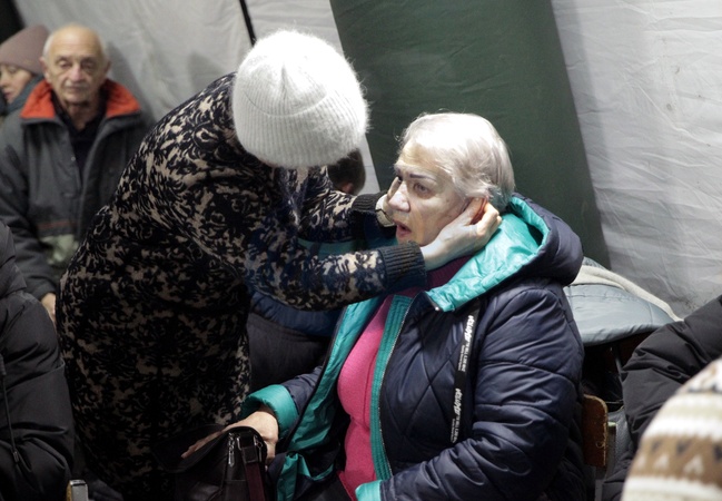 A woman gives an ear massage to another woman at a mobile heating point in the Desnianskyi district of Kyiv, Ukraine, on January 22, 2026. The heating point was deployed amid power and heating outages after Russian attacks on energy infrastructure, Credit:Hennadii Minchenko / Avalon