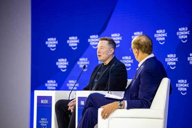 Elon Musk in conversation with Laurence D. Fink, Chair and CEO of BlackRock at the World Economic Forum 2026 Annual Meeting in Davos, Switzerland, Credit:World Economic Forum / Avalon