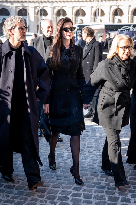 Anne Hathaway is seen at the funeral ceremony for the late Italian fashion designer Valentino Gavarani at Basilica di Santa Maria degli Angeli e dei Martiri in Rome, Italy, on 23 January, 2026., Credit:Stefano Costantino TTL / Avalon