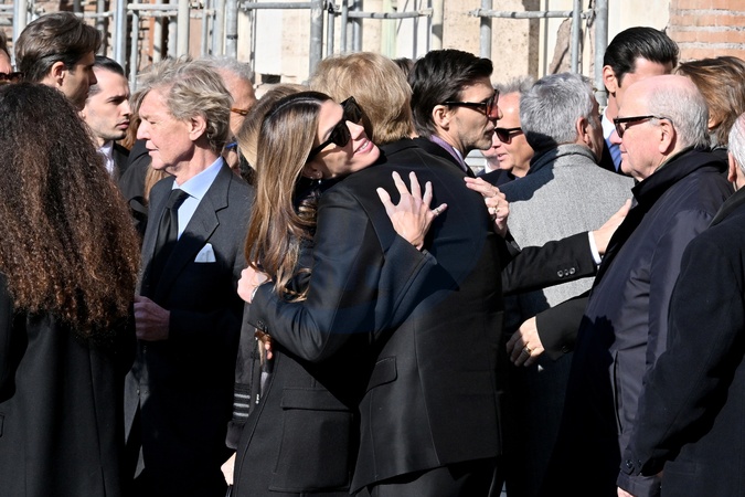 Basilica of Santa Maria degli Angel, funeral of fashion designer Valentino Garavani. Pictured is the coffin exiting the church at the end of the service. Bianca Brandolini D'Adda embraces Bruce Hoeksema. . Rome, Italy 23 january 2026, Credit:Maria Laura Antonelli / Avalon