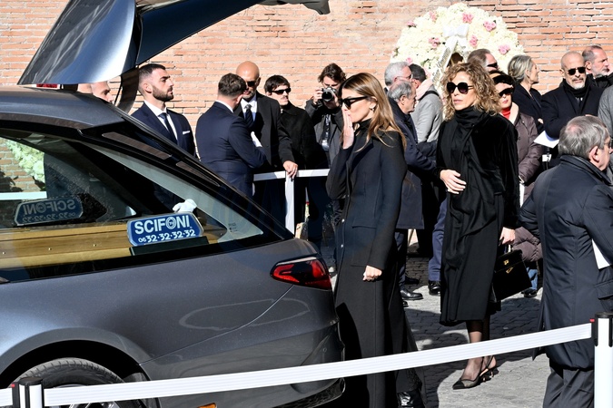 Basilica of Santa Maria degli Angel, funeral of fashion designer Valentino Garavani. Pictured is the coffin exiting the church at the end of the service. Bianca Brandolini D'Adda bids farewell to the designer, blowing him a kiss. . Rome, Italy 23 january 2026, Credit:Maria Laura Antonelli / Avalon