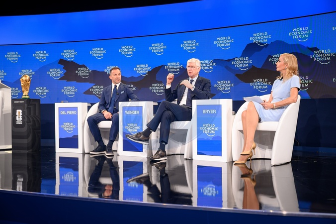 Arsene Wenger and Alessandro Del Piero at A Davos Kick-off for the World Cup session at the World Economic Forum Annual Meeting 2026 in Davos-Klosters, Switzerland, on 22/1/2026 from 13:15 to 14:00 in the Congress Centre – Sanada (Zone E), Stakeholder Dialogue. (fifa world cup 2026). 2026 World Economic Forum / Sandra Blaser, Credit:Sandra Blaser/World Economic Forum / Avalon
