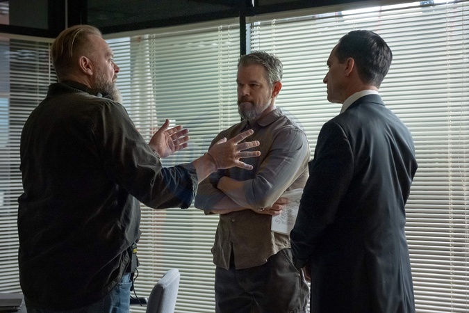 Joe Carnahan, Matt Damon, Néstor Carbonell, "The RIP" (2026), Credit:Claire Folger/Netflix / Avalon