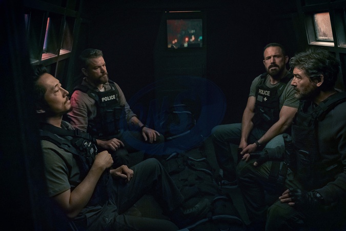 Steven Yeun, Matt Damon, Ben Affleck, Kyle Chandler, "The RIP" (2026), Credit:Claire Folger/Netflix / Avalon