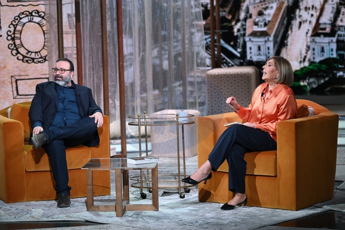 TV show "The Library of Feelings," Rai 3. Pictured: Massimiliano Bruno, Maria Latella . Milan, Italy 23 January 2026, Credit:AGF / Avalon