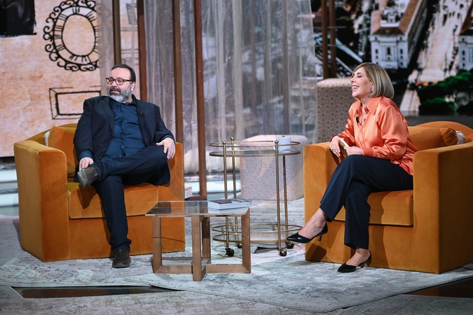 TV show "The Library of Feelings," Rai 3. Pictured: Massimiliano Bruno, Maria Latella . Milan, Italy 23 January 2026, Credit:AGF / Avalon