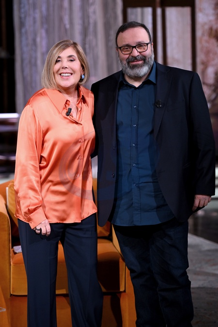 TV show "The Library of Feelings," Rai 3. Pictured: Massimiliano Bruno, Maria Latella . Milan, Italy 23 January 2026, Credit:AGF / Avalon