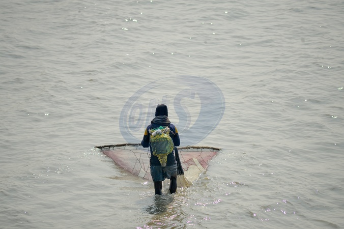 Chattogram, Bangladesh- Fisherman are casts a handmade net to catch fish near the Sitakunda coastline along the Bay of Bengal., Credit:Md Rafayat Haque Khan / Avalon