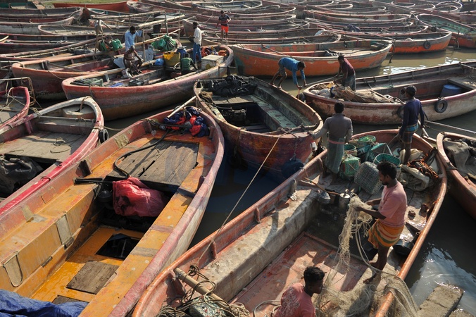 Chattogram, Bangladesh - Fisherman prepares his boat before heading into the Bay of Bengal for fishing trip., Credit:Md Rafayat Haque Khan / Avalon