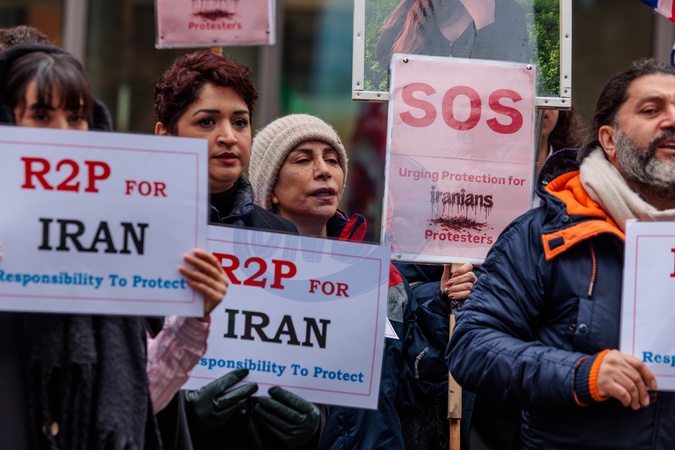 US Embassy, London, UK. 23rd January 2026.Iranian activists, who have joined former political prisoner Nasrin Roshan on Day 7 of her hunger strike outside the US Embassy in London, call on the International community to enact the Responsibility to Protect (R2P) - a global political commitment to protect populations from mass atrocities such as genocide and crimes against humanity., Credit:Photo by Amanda Rose / Avalon
