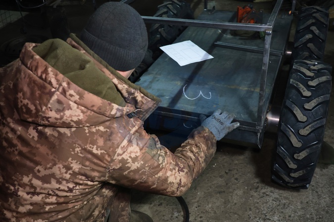 Khartia Battalion fighters build platforms for ground robotic systems