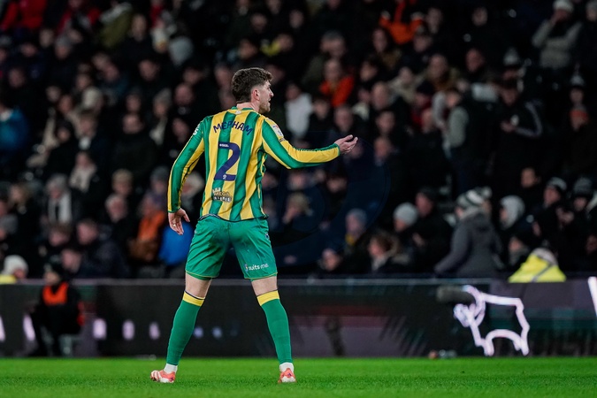 Chris Mepham of West Bromwich Albion celebrates his goal to make it 1-1 during the Sky Bet Championship match Derby County vs West Bromwich Albion at Pride Park Stadium, Derby, United Kingdom on 23 January 2026, Credit:Maynard Manyowa/News Images / Avalon