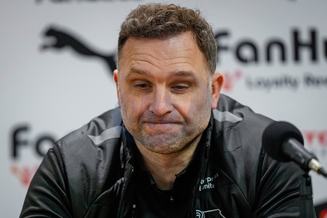 John Eustace manager of Derby County speaks in the manager post-match press conference during the Sky Bet Championship match Derby County vs West Bromwich Albion at Pride Park Stadium, Derby, United Kingdom on 23 January 2026, Credit:Maynard Manyowa/News Images / Avalon
