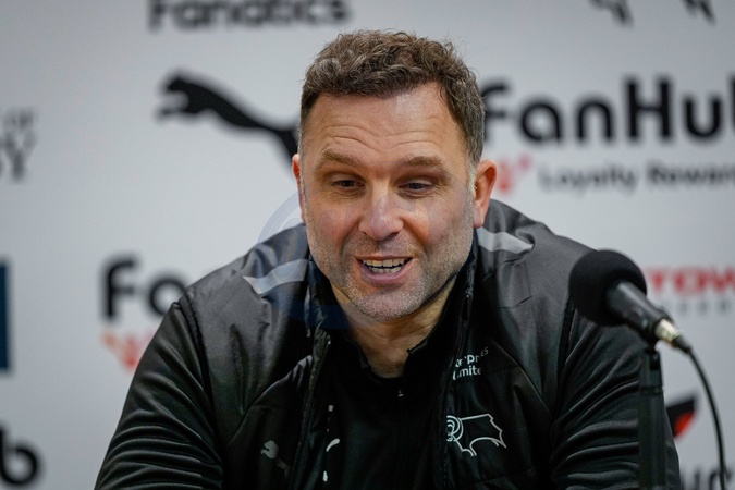 John Eustace manager of Derby County speaks in the manager post-match press conference during the Sky Bet Championship match Derby County vs West Bromwich Albion at Pride Park Stadium, Derby, United Kingdom on 23 January 2026, Credit:Maynard Manyowa/News Images / Avalon
