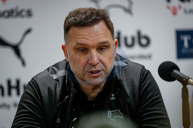 John Eustace manager of Derby County speaks in the manager post-match press conference during the Sky Bet Championship match Derby County vs West Bromwich Albion at Pride Park Stadium, Derby, United Kingdom on 23 January 2026, Credit:Maynard Manyowa/News Images / Avalon