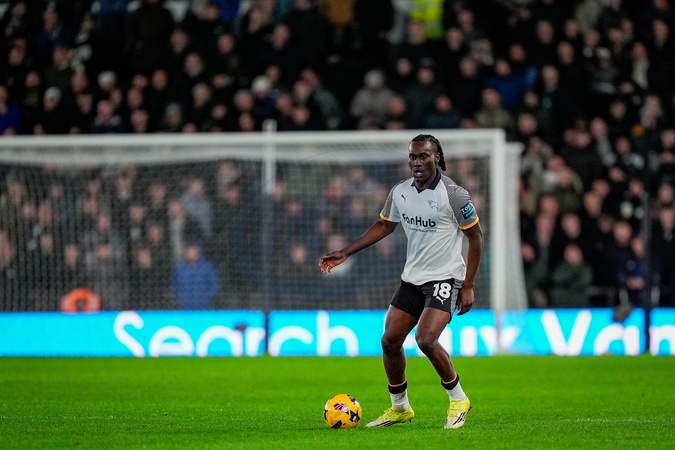 David Ozoh of Derby County controls the ball during the Sky Bet Championship match Derby County vs West Bromwich Albion at Pride Park Stadium, Derby, United Kingdom on 23 January 2026, Credit:Maynard Manyowa/News Images / Avalon