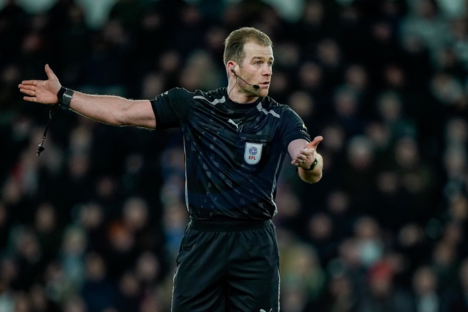 Referee Anthony Backhouse during the Sky Bet Championship match Derby County vs West Bromwich Albion at Pride Park Stadium, Derby, United Kingdom on 23 January 2026, Credit:Maynard Manyowa/News Images / Avalon