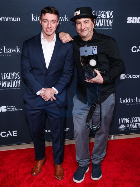 BEVERLY HILLS, LOS ANGELES, CALIFORNIA, USA - JANUARY 23: James Dumoulin (The School of Hard Knocks) and Karl Larsen arrive at the 23rd Annual Living Legends Of Aviation Awards held at The Beverly Hilton Hotel on January 23, 2026 in Beverly Hills, Los Angeles, California, United States., Credit:Xavier Collin / Avalon