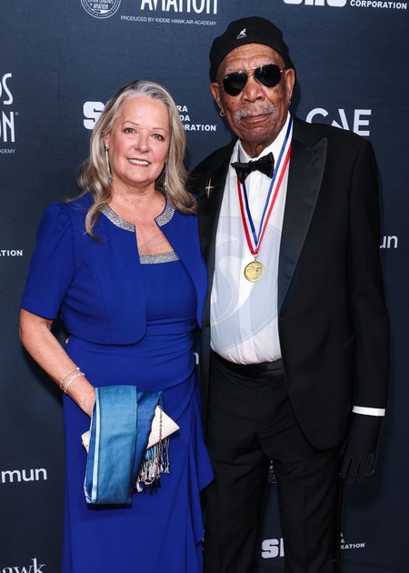 BEVERLY HILLS, LOS ANGELES, CALIFORNIA, USA - JANUARY 23: Lori McCreary and Morgan Freeman arrive at the 23rd Annual Living Legends Of Aviation Awards held at The Beverly Hilton Hotel on January 23, 2026 in Beverly Hills, Los Angeles, California, United States., Credit:Xavier Collin / Avalon