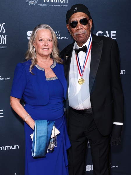 BEVERLY HILLS, LOS ANGELES, CALIFORNIA, USA - JANUARY 23: Lori McCreary and Morgan Freeman arrive at the 23rd Annual Living Legends Of Aviation Awards held at The Beverly Hilton Hotel on January 23, 2026 in Beverly Hills, Los Angeles, California, United States., Credit:Xavier Collin / Avalon