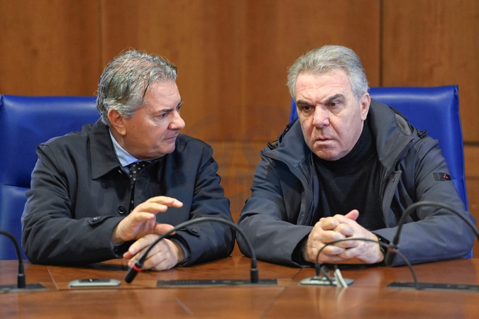 Following Cyclone Harry, the Undersecretary to the Presidency of the Council of Ministers met with Civil Protection personnel at their headquarters in Catanzaro. Pictured from left: Filippo Mancuso, Vice President of the Calabria Region; Luigi Sbarra, Undersecretary to the Presidency of the Council of Ministers. Catanzaro, Italy 24 January 2026, Credit:Valeria Ferraro / Avalon