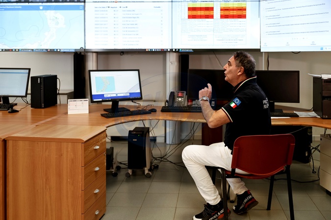 Following Cyclone Harry, the Undersecretary to the Presidency of the Council of Ministers met with Civil Protection personnel at their headquarters in Catanzaro. Pictured is a Civil Protection officer monitoring data. Director General of Civil Protection for Calabria. Catanzaro, Italy 24 January 2026, Credit:Valeria Ferraro / Avalon