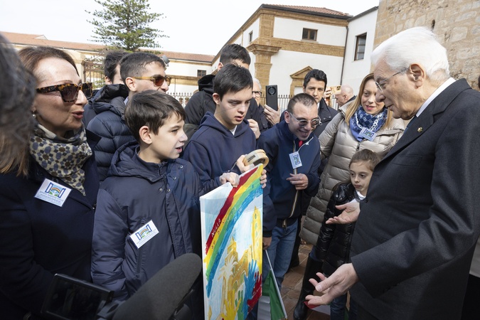 President Sergio Mattarella greets the young people of the Regina Elena Foundation community and the Effatà Madonie Onlus Association. . Cefalù, Italy 24 January 2026, Credit:Francesco Ammendola / Avalon