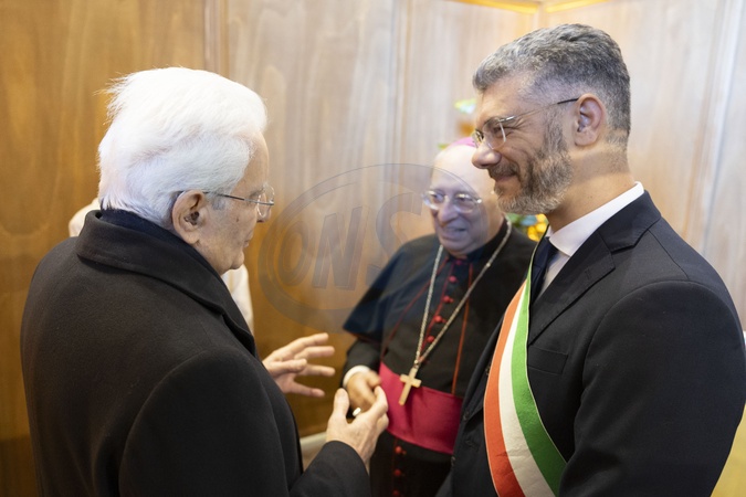 President of the Republic Sergio Mattarella with His Excellency Monsignor Giuseppe Marciante, Bishop of Cefalù, and Daniele Salvatore Tumminello, Mayor of Cefalù, on the occasion of the conference entitled "The Mediterranean: A Sea of Peace?" . Cefalù, Italy 24 January 2026, Credit:Francesco Ammendola / Avalon