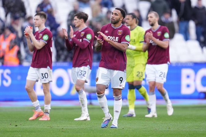 West Ham players applaud home support at full time during the Premier League match West Ham United vs Sunderland at London Stadium, London, United Kingdom, 24th January 2026, Credit:Harvey Murphy/News Images / Avalon