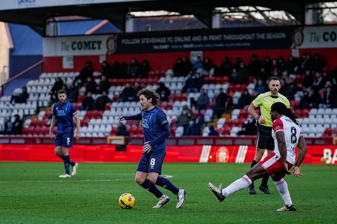 Aaron Lewis of Mansfield Town makes a run with the ball during the Sky Bet League 1 match Stevenage vs Mansfield Town at Lamex Stadium, Stevenage, United Kingdom, 24th January 2026, Credit:Maynard Manyowa/News Images / Avalon