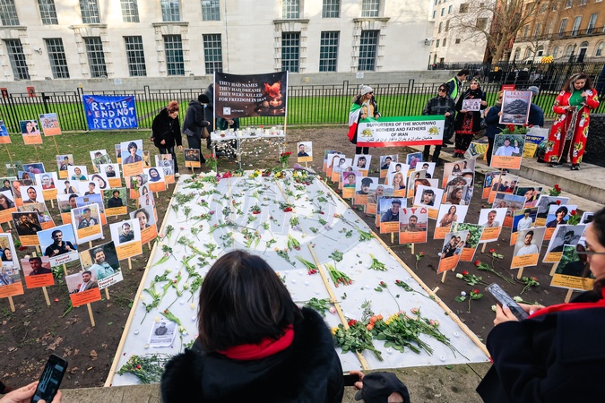 Vigil held by Iranians in the UK outside Downing Street in London, UK, on 24 January 2026