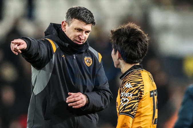 Sergej Jakirovi manager of Hull City speaks to Yu Hirakawa of Hull City after the game during the Sky Bet Championship match Hull City vs Swansea City at MKM Stadium, Hull, United Kingdom on 24 January 2026, Credit:Ae Cosgrove/News Images / Avalon
