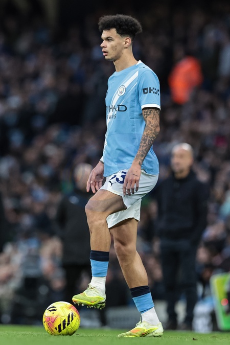 Nico O'Reilly of Manchester City with the ball during the Premier League match Manchester City vs Wolverhampton Wanderers at Etihad, Manchester, United Kingdom on 24 January 2026, Credit:Mark Cosgrove/News Images / Avalon