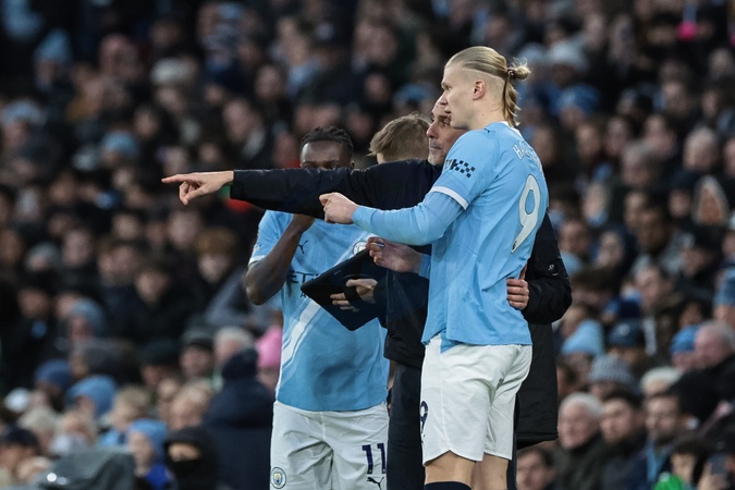 Pep Guardiola manager of Manchester City gives instruction to Erling Haaland of Manchester City as he prepares to come on in the second half during the Premier League match Manchester City vs Wolverhampton Wanderers at Etihad, Manchester, United Kingdom on 24 January 2026, Credit:Mark Cosgrove/News Images / Avalon