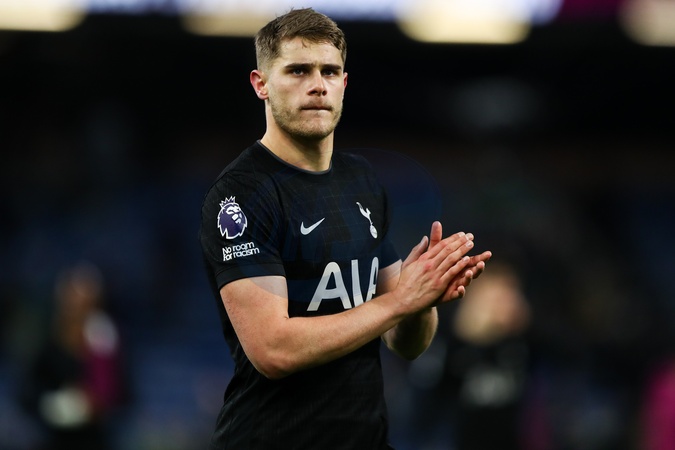 Micky van de Ven of Tottenham Hotspur claps fans after full time whistle after the Premier League match Burnley vs Tottenham Hotspur at Turf Moor, Burnley, United Kingdom on 24 January 2026, Credit:Jorge Horsted/News Images / Avalon